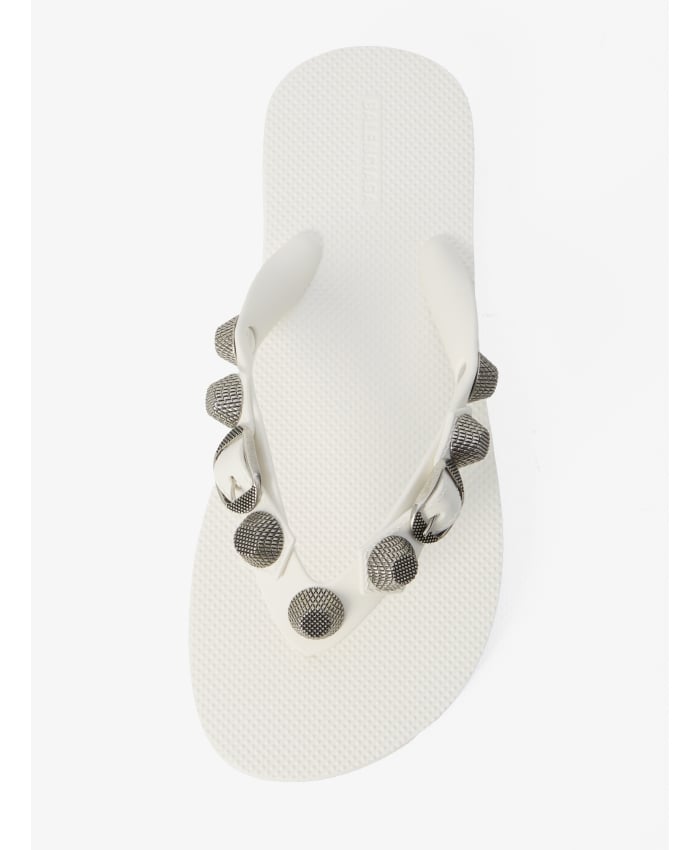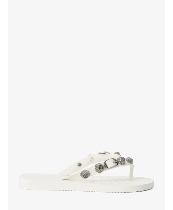 + Free ShippingCagole thong sandals in white recycled rubber with silver-tone metal studs and buckles. Balenciaga logo on the insole. ITA size.