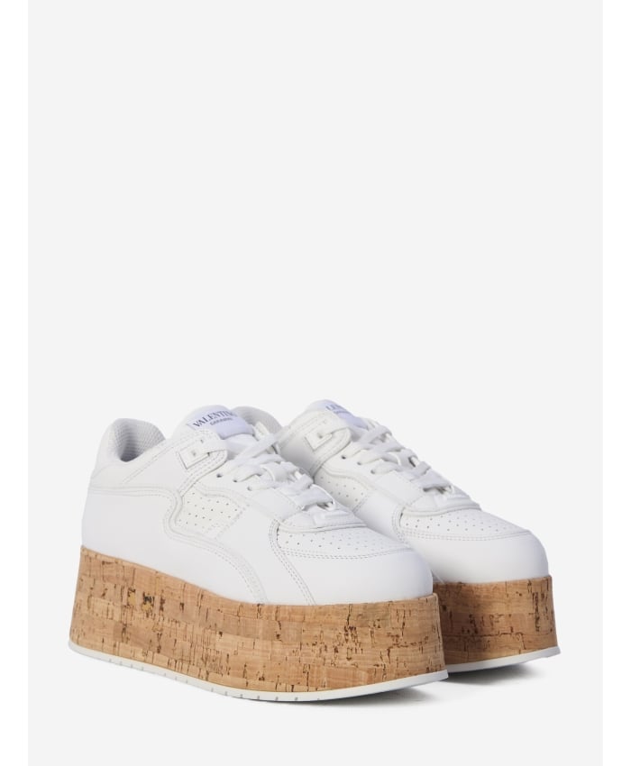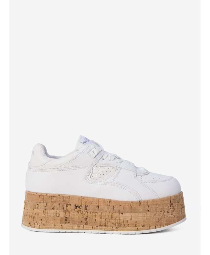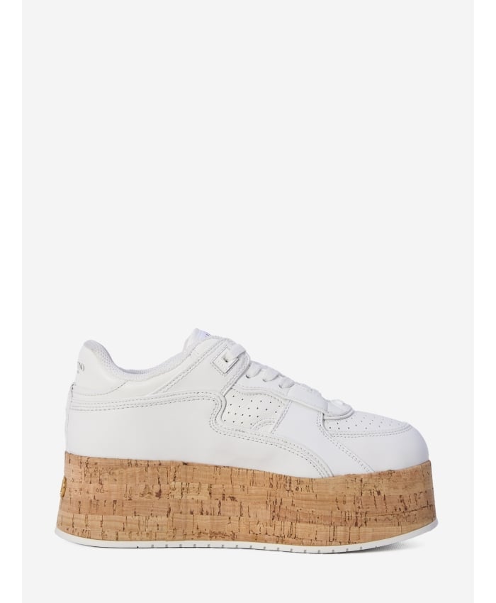 + Free ShippingFreedots XL sneakers in white calfskin with a cork platform. They feature a round perforated toe, lace-up closure, logo label on the tongue, white leather heel tab with black logo, and a light gold-finish VLogo Signature detail on the platform. Completed with a rubber sole. Dust bag and additional laces included. Any imperfections in the leather should not be considered manufacturing defects but rather a characteristic of the material. Height: 6cm ITA size