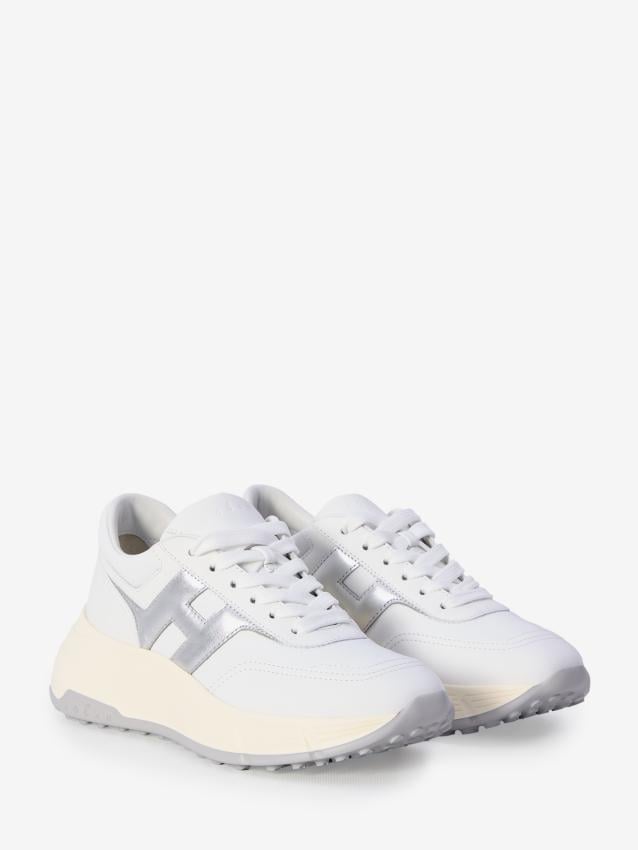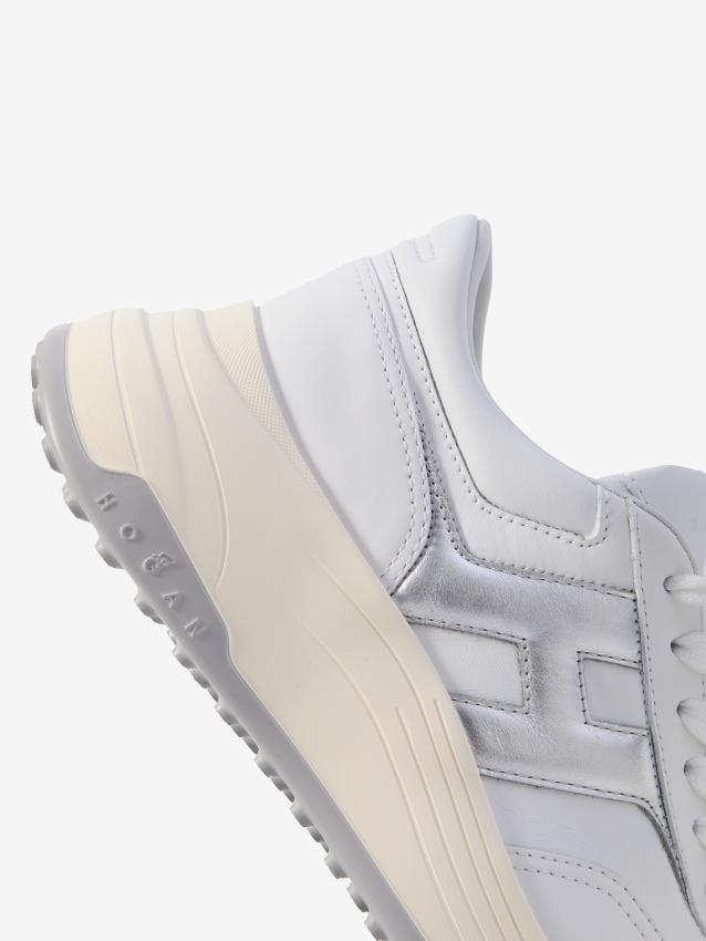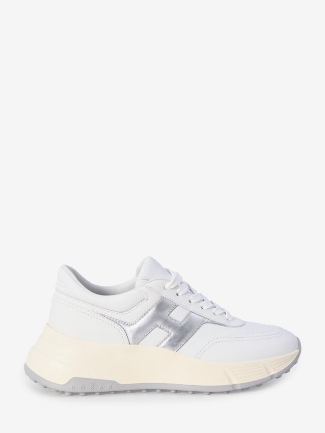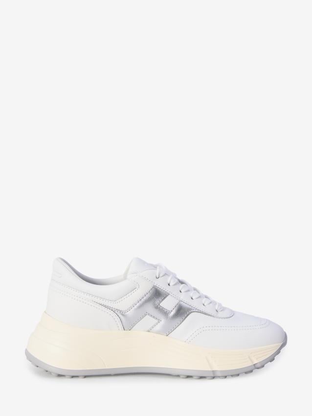 + Free ShippingHogan Hi-Fi sneakers in white and silver leather. They feature a silver leather H detail on the sides, a lace-up closure, a logo on the tongue, a memory foam insole, and a rubber sole with studs. A dust bag is included. Additional laces are also included. Any imperfections in the leather should not be considered manufacturing defects, but rather a characteristic of the material. ITA size Sole height: 6,5cm