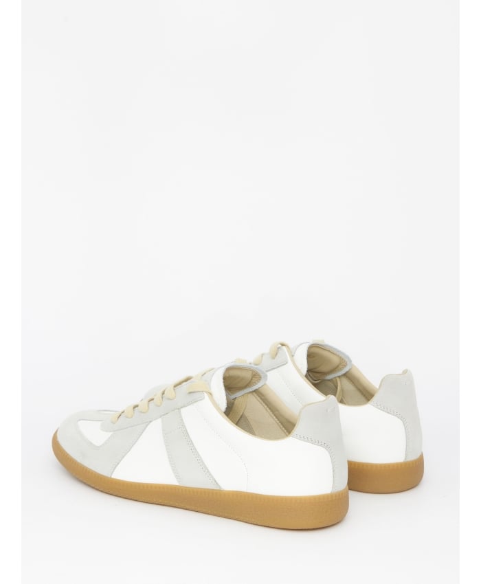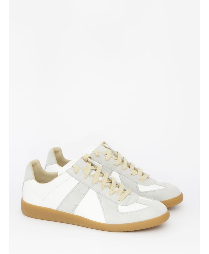 + Free ShippingWhite and grey Replica sneakers in suede and calf leather with beige rubber sole. They feature lace-up closure, round toe and branded tag on the insole. Dust bag included. Any leather imperfections are not to be considered manufacturing defects, but a peculiarity of the material.ITA size.