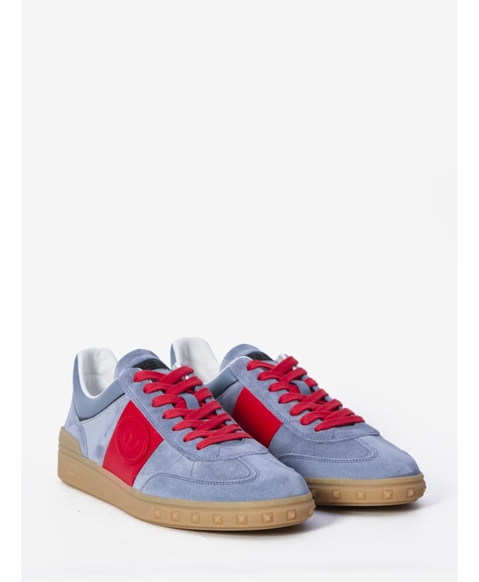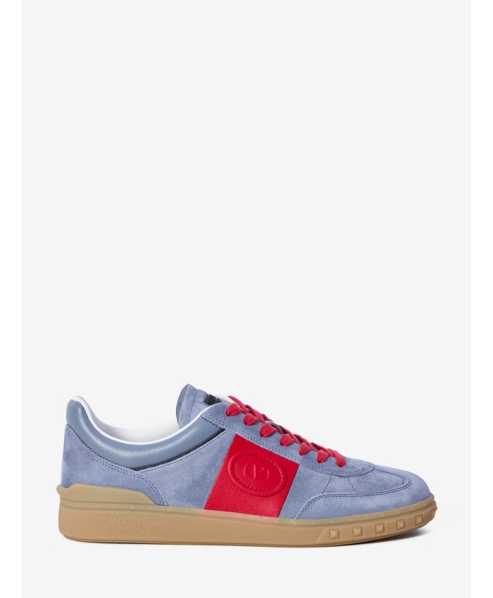 + Free ShippingValentino Garavani Upvillage Low Top sneakers in grey split leather. They feature a red leather patch with VLogo Signature detail, nappa calfskin band, Valentino Garavani logo screen-printed on the tongue, and a rubber sole with stud details and logo. Dust bag included. Additional laces included. Any leather imperfections are not to be considered manufacturing defects, but a peculiarity of the material.Taglia ITA